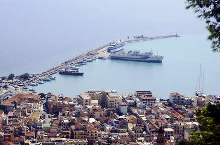 Beautiful panorama looking over the city and harbor of Zakynthos on the island Zakynthos, Greece