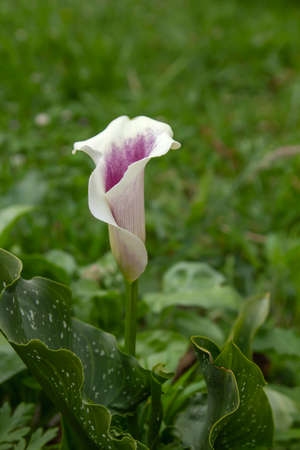 beautiful view of blooming Calla Lily(Arum Lily,Gold Calla),close-up of purple with white Calla Lily(Arum Lily,Gold Calla) in full bloom in the garden