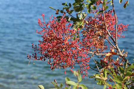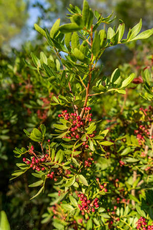 Red berries of a wild mastic bush (Pistacia lentiscus)