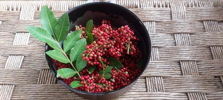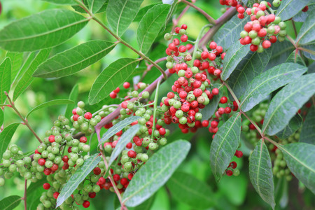 Chinese prickly ash fruits background, Sichuan pepper, Zanthoxylum bungeanum