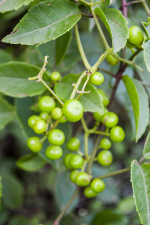 Chinaberry fruits and leaves. Meliaceae deciduous tree. The fruits, leaves and bark are medicinal.