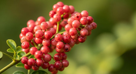 Clusters of ripening berries on vibrant green foliage in a natural setting during late summer afternoon