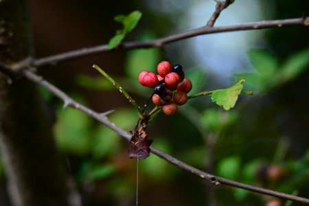 evocative close-up image of red berries from the Mediterranean scrub in Italy
