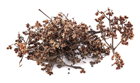 Szechuan pepper (Zanthoxylum piperitum), fruits isolated against white background
