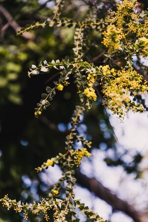 native Australian wattle tree in full bloom with the typical round flowers, the plant is also symbol of the country