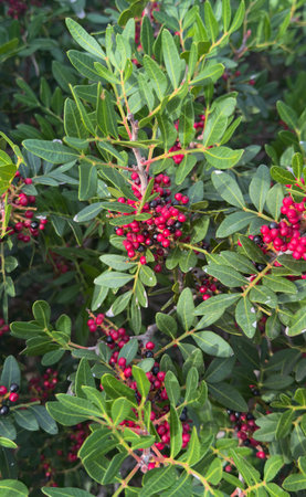 Red berries of a wild mastic bush (Pistacia lentiscus)