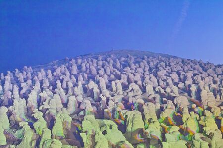KARPACZ, POLAND - MARCH 08, 2020: Tourist trail to Sniezka (mountain on the border between the Czech Republic and Poland). Winter landscape. Giant Mountains, Poland, Europe.