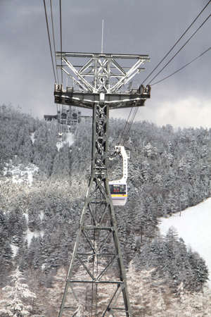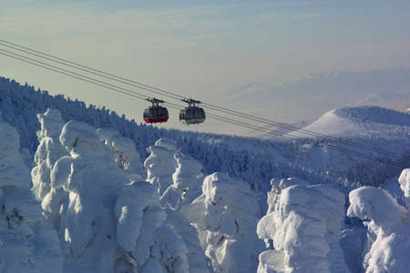 Yamagata; Japan - 28 Dec 2019: People are traveling on the ropeway to Utopia Skii slope in Zao Mountain.
