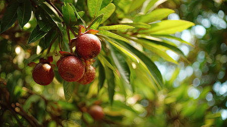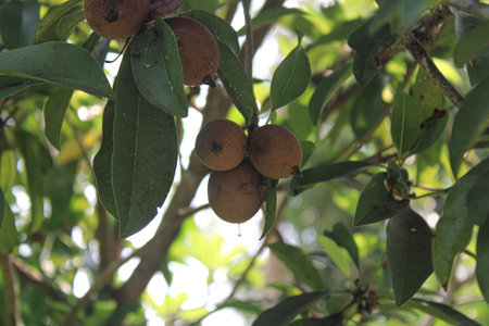 fresh Sapodilla fruit on the tree