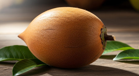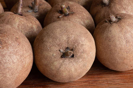 Sapodilla fruits on wooden background. Fresh sapodilla fruit.