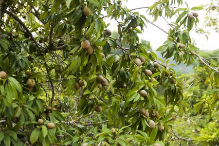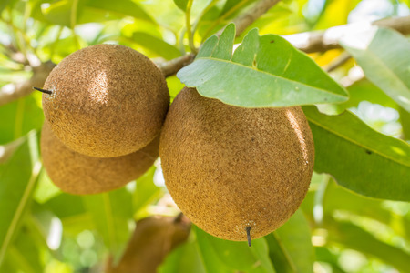 Sapodilla fruit on tree in the garden, Thailand.