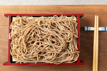 Kyoto,Japan - November 14, 2021: Closeup of Zaru soba, chilled noodle dish