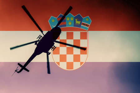 Helicopter on Croatia flag background. Save Croatia from fire concept
