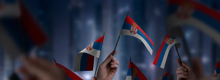 flag of Serbia at sunny day, sunlight and happiness symbol - nature 3D rendering
