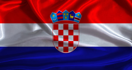 the red, white and blue flag of Croatia flutters in the wind against the blue sky