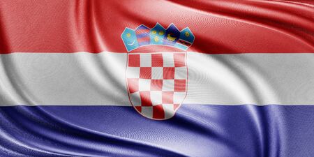 Croatia flag with cloth textured background. National flag of Croatia with realistic texture