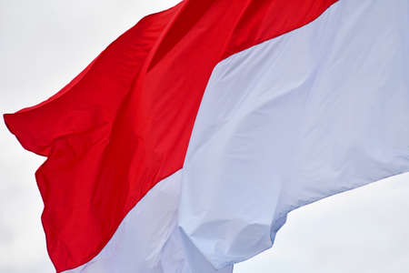 Indonesian Flag,Red and White color,( Bendera Merah Putih),Indonesian independence day, against sky.