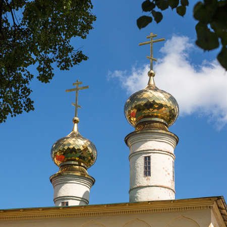 Gilded domes of the Orthodox Church, village of Karabanovo, Kostroma region, Russia