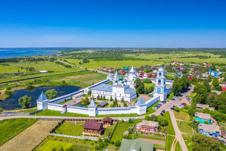 Aerial drone view of Nikitskiy monastery in Pereslavl Zalessky, Yaroslavl Region, Russia. Summer sunny day. Touristic Golden ring of Russia.