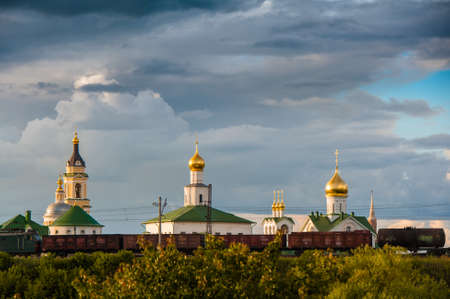 Orthodox church complex in Zavidovo on a September day. Tver region, Russia