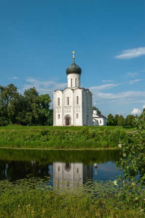Church of the Intercession of the most Holy Theotokos on the Nerl in summer. Built in the 12th century. Bogolyubovo, Vladimir region, tourist Golden ring of Russia. Historical sights of Russia.