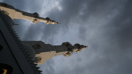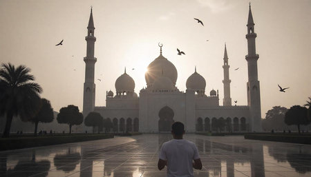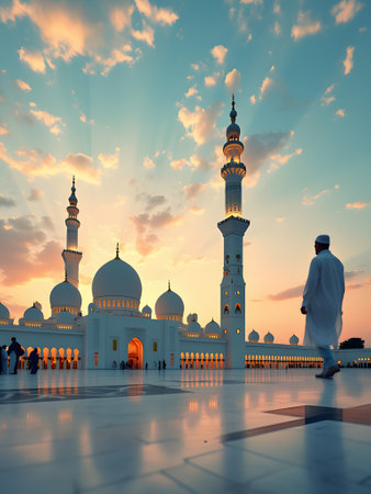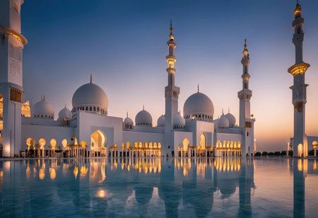 beautiful mosque against a pure serene and divine atmosphere professional photography