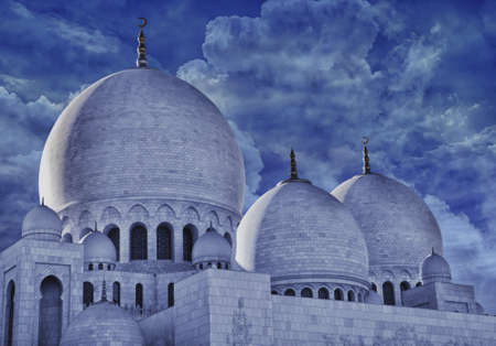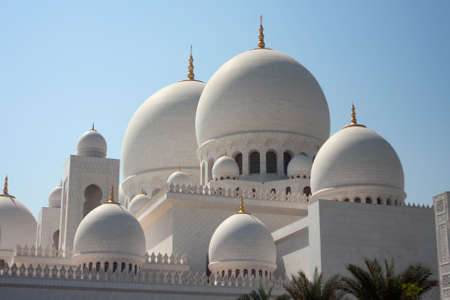 The exterior and domes of world famous landmark Sultan Sheikh Zayed Mosque in Abu Dhabi, UAE Considered as 8th largest mosque in the world