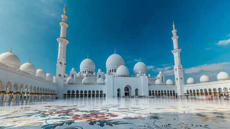 Sheikh Zayed Grand Mosque timelapse hyperlapse located in Abu Dhabi - capital city of United Arab Emirates.