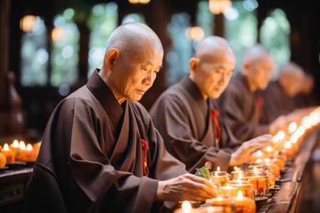 Serene practice - buddhism with buddhist monk meditating, highlighting peacefulness and spiritual depth of meditation, emphasizing importance of mindfulness, inner tranquility in buddhist tradition