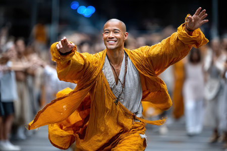 A solemn and disciplined monk, mastering martial arts and achieving inner harmony. - Generative AI