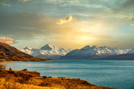 Beautiful view of Tekapo Lake with Mount Cook in the background, New Zealand