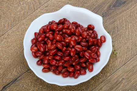 Organic autumn berries of viburnum and dogwood pattern. Healthy food for tea, compote and jam concept. Hard shadows. Top view background. High quality photo