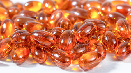 Close-up of fish oil capsules with omega-3 and vitamin d for health supplementation. concept of nutrition, wellness, dietary support, healthy living.