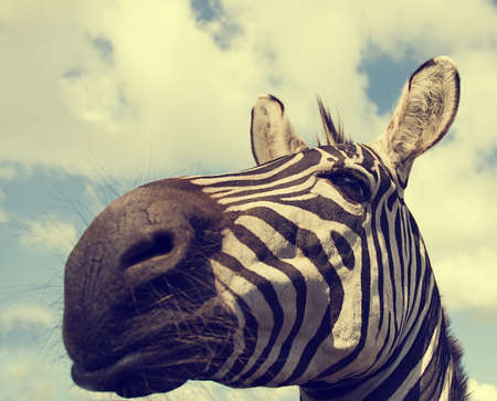Close up portrait of a zebra, vintage color toned
