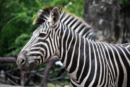 Zebra in the zoo. Wildlife scene from nature. Animal portrait.