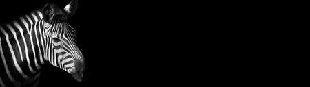 Professional animal zebra design for website. Black and white zebra on a black background. Popular animal.
