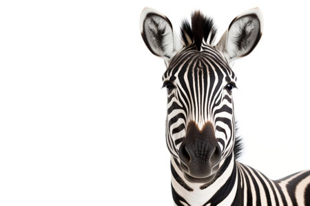 Zebra Face Shot Isolated on White Background