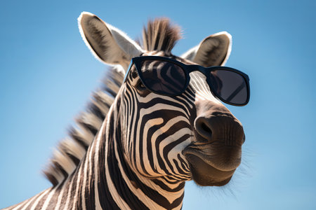 Portrait of a trendy zebra wearing cool sunglasses. Summer holiday concept. Generative ai