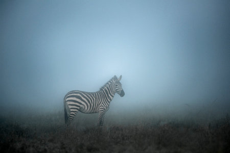 Zebra in the Morning mist, serengeti, Africa