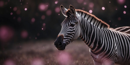 AI Generated. A zebra with a pink face is shown in a black background