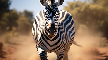 timeless zebra photographed in a trotting pose in an arid savanna, in a classic wildlife photography style, with contrast rich tones, direct sunlight, high resolution