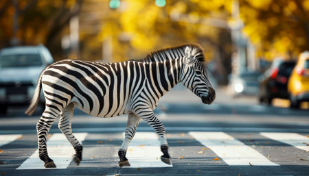 zebra standing in the middle of a Crosswalk traffic . Generative AI.