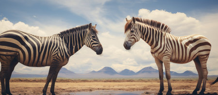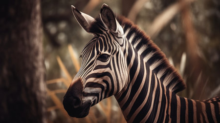 a zebra gracefully standing beside the rich soil, showcasing the artistry of narrative-driven visual storytelling. this captivating image is infused with african influence, highlighted by the wet-on-wet blending technique. the zebra's majestic presence is captured through the soft interplay of light silver and brown tones. shot with a wide-angle lens, this photograph beautifully showcases nature-based patterns while maintaining an iso 200 setting. ai generated