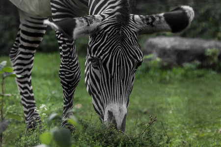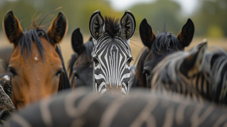 Explore the beauty of a Zebra's face with a close-up shot capturing its focused eyes. Immerse yourself in this documentary photo, showcasing the unique and captivating details of the majestic Zebra.