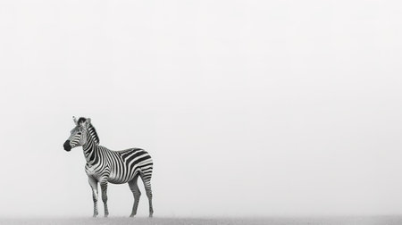Zebra standing in the fog on a foggy day with copy space
