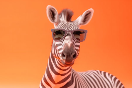 a zebra confidently sporting stylish sunglasses against a backdrop of pastel hues. The zebra's unique pattern contrasts with the trendy eyewear, creating a captivating visual contrast.