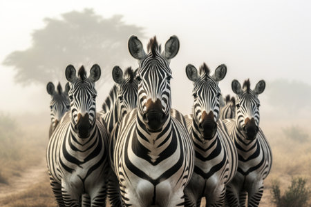 Group adult zebras in african savannah. Created with Generative AI