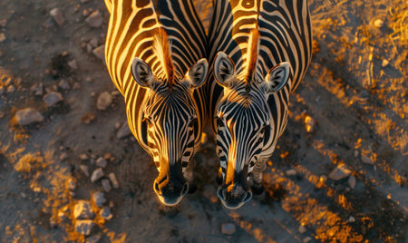Top view of a zebra pair standing side by side