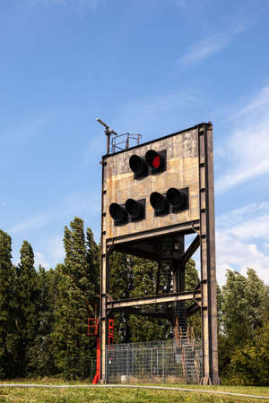 Traffic lights for ships at the Scheldt river bank in Antwerp, Belgium