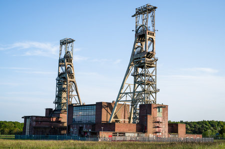 HERTEN, GERMANY - OCTOBER 05 2010: Herten, North Rhine-Westphalia Zeche Ewald towers and a great sky